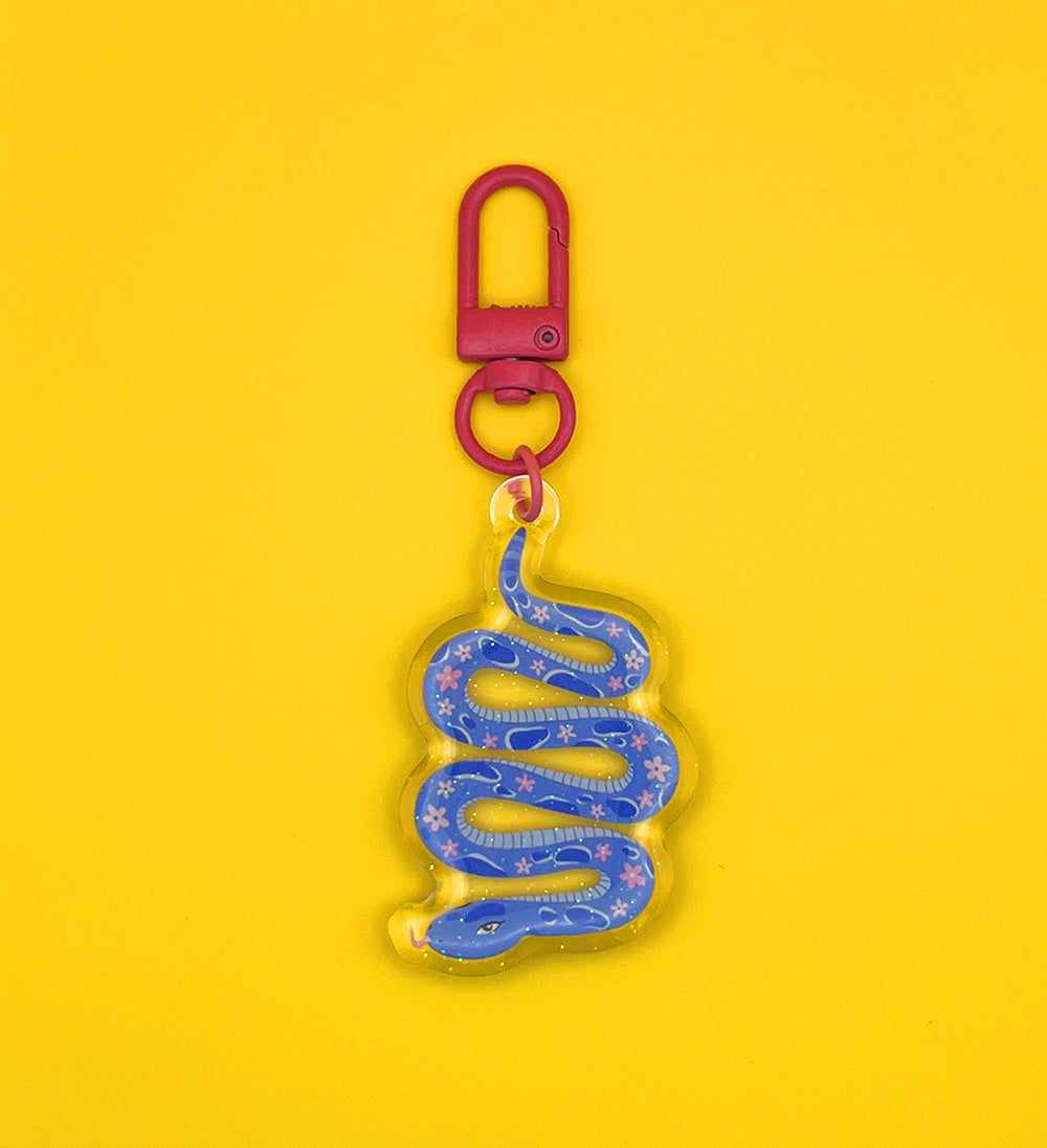 Ce porte-clés serpent avec de jolies petites fleurs et paillettes ne pourra effrayer personnes, bien au contraire !