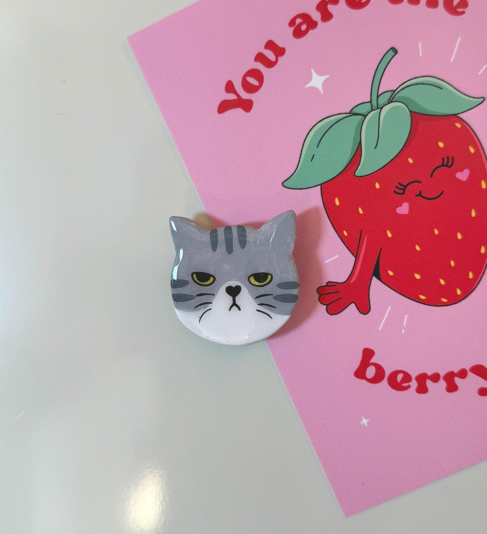 Que diriez-vous d'ajouter cette petite bouille de chat à votre frigo avec ce magnet Chat grincheux, 100% réalisé à la main !