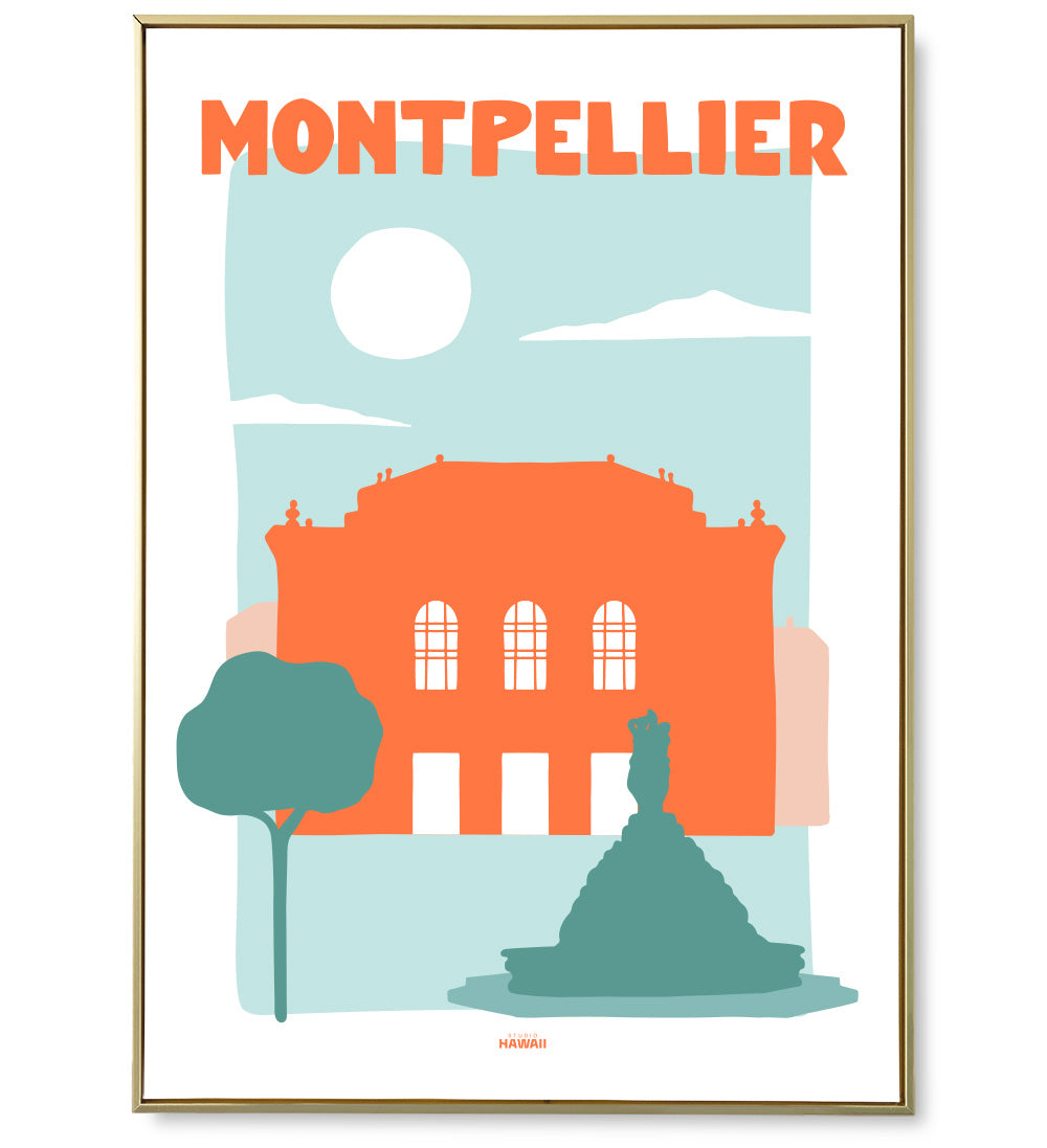 Poster ville Montpellier, affiche Montpellier, Ville de France, art mural